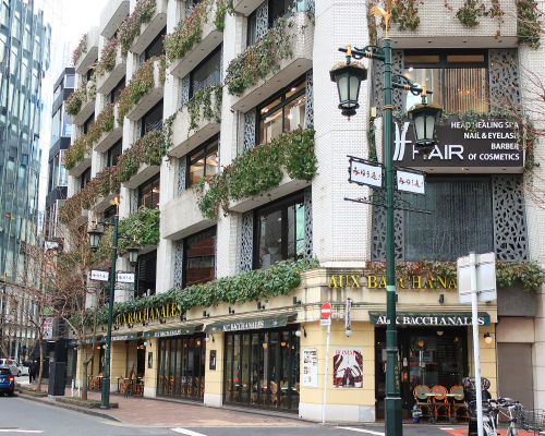 みゆき通り並びにある『オープンカフェ AUX BACCHANALES銀座』の